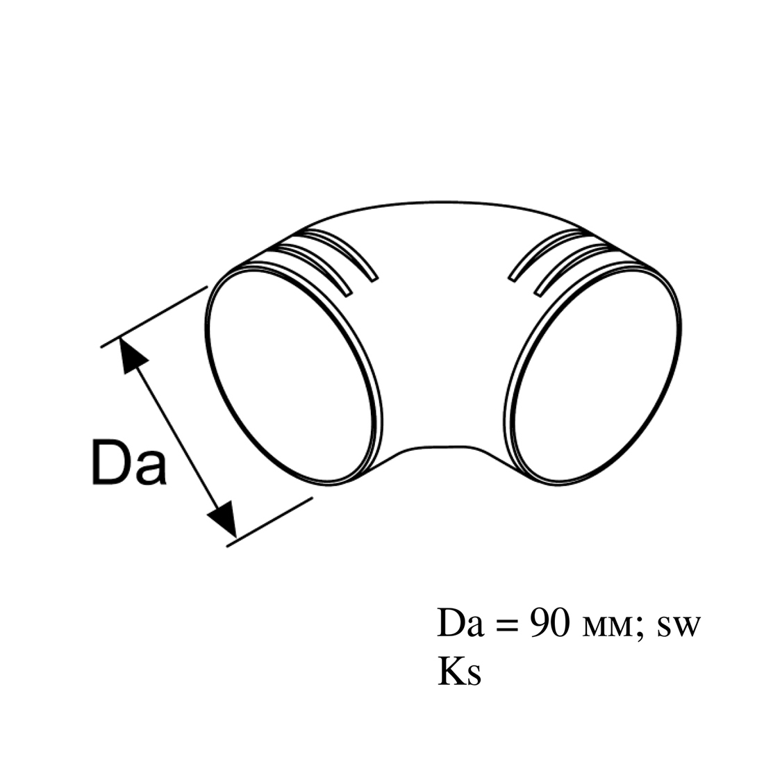 90 grader bøjning 90 mm. / 90 mm.