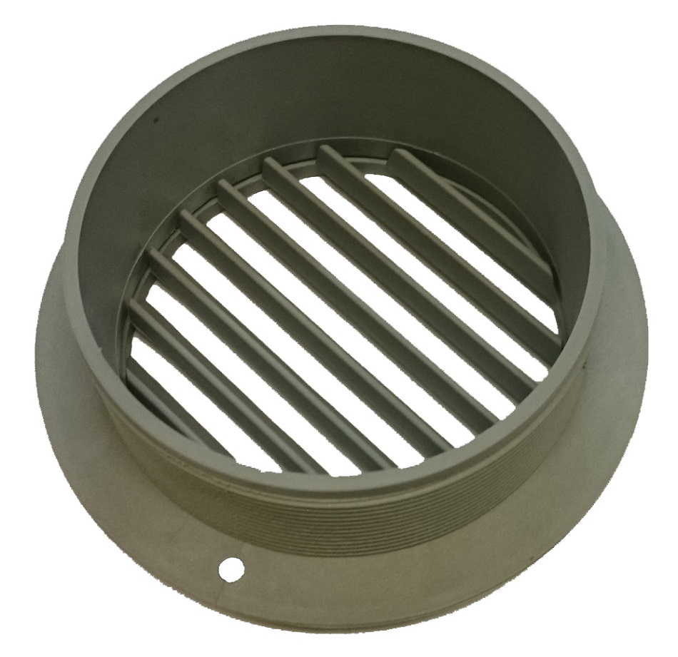 Grå udblæsnings ventil 45 grader til rør ø60 mm.