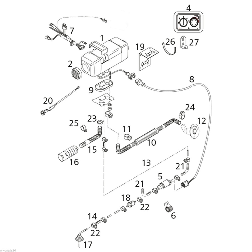 9036994A –12 volt. Webasto Marine Komfort Air Top Evo 40 D Marine luftfyr, MultiControl og mont. sæt 12 volt Diesel.