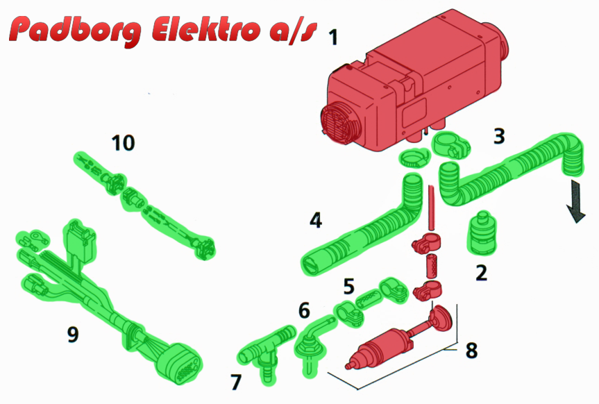 Rød = Hvad du får når du køber et Webasto Air Top løst fyr.