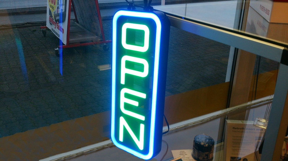 - Et moderne LED åbent skilt som dine nabo butikker ikke har.
