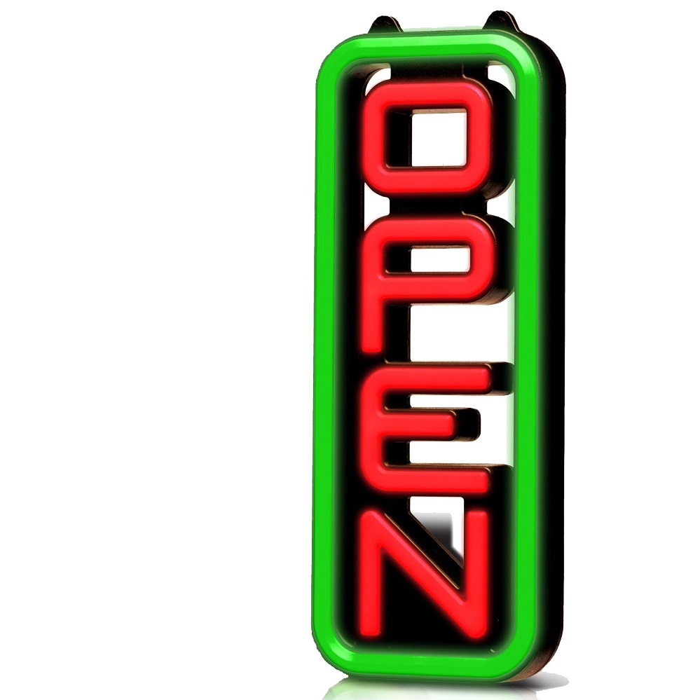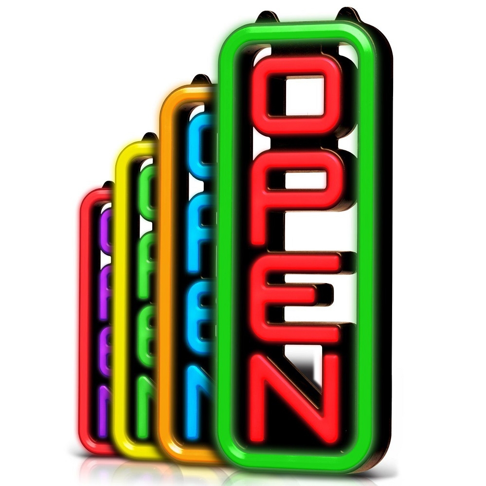 Åbent skilt med multifarvet LED, lodret model.
