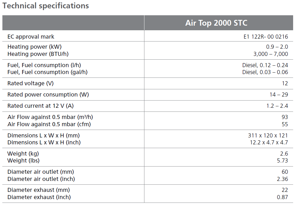 | Bådvarmer (type) | Air Top 2000 STC | |